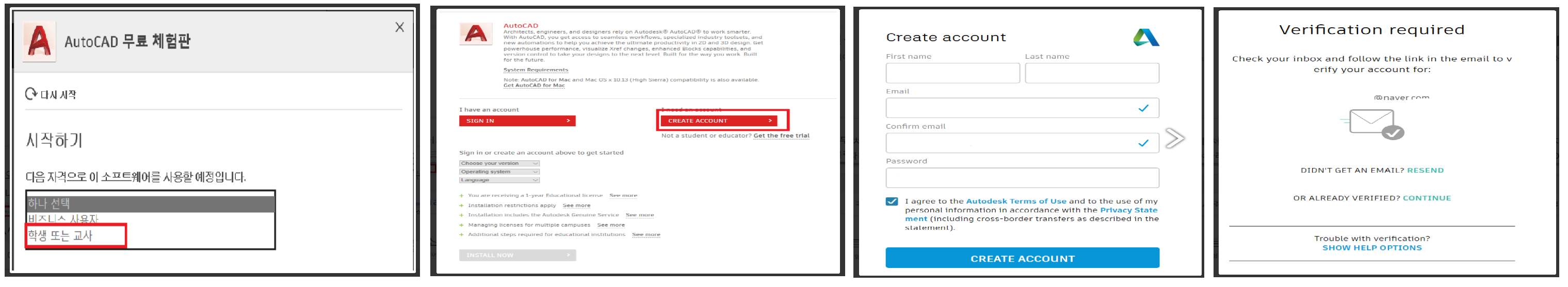 - 다음은 영어가 나옵니다. 계정을 만들거나 이미 계정이 있으면 로그인하는 부분입니다. 저는 이 오토데스크에 등록한 적이 없습니다. 그러므로 계정 만드는 것부터 해야겠지요. <create account>를 클릭하여 계정 만들기를 합니다.